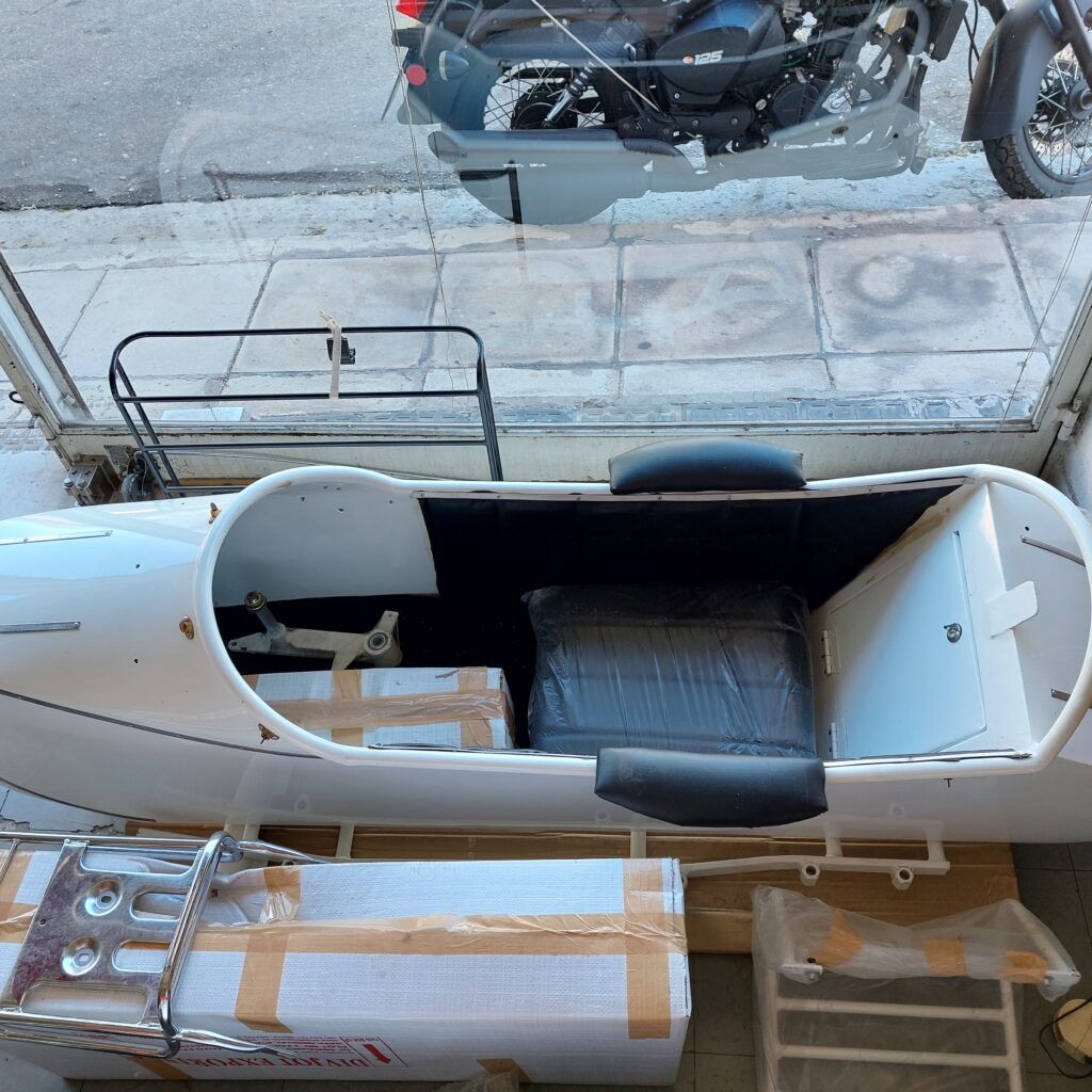 [περιλαμβάνει το σάιντκαρ με πορτμπαγκάζ, κάθισμα, χαμηλό παρμπρίζ, βαμμένο σε μαύρο χρώμα επίσης περιλαμβάνει και τον τροχό σε νικελ, ο άξονας του είναι 20mm και αμορτισέρ της Hagon shocks . Εκτός των παραπάνω είναι αναγκαίο το κιτ σύνδεσης της μοτοσυκλέτας με το σάιντκαρ (4ων σημείων, κοστίζει 470€) το οποίο δεν περιλαμβάνεται στην τιμή, επίσης υπάρχει η δυνατότητα βαφής στο χρώμα της επιλογής σας με επιπλέον επιβάρυνση]. Για αναλυτικότερα τεχνικά χαρακτηριστικά παρακαλώ επικοινωνήστε μαζί μας. Διάφορα αξεσουάρ που παρουσιάζονται στις φωτογραφίες, μπορεί να είναι διαθέσιμα μόνο με επιπλέον κόστος. Υπάρχει η δυνατότητα για φρένο στον τροχό του καλαθιού (ταμπούρο ή δισκόφρενο), θερμαινόμενο κάθισμα, δερμάτινη διακόσμηση του εσωτερικού, κάλυμμα του καλαθιού, ολόκληρη σκεπή-καμπίνα με παράθυρα, ζώνη ασφαλείας, σχάρα αποσκευών, προφυλακτήρας κλπ.